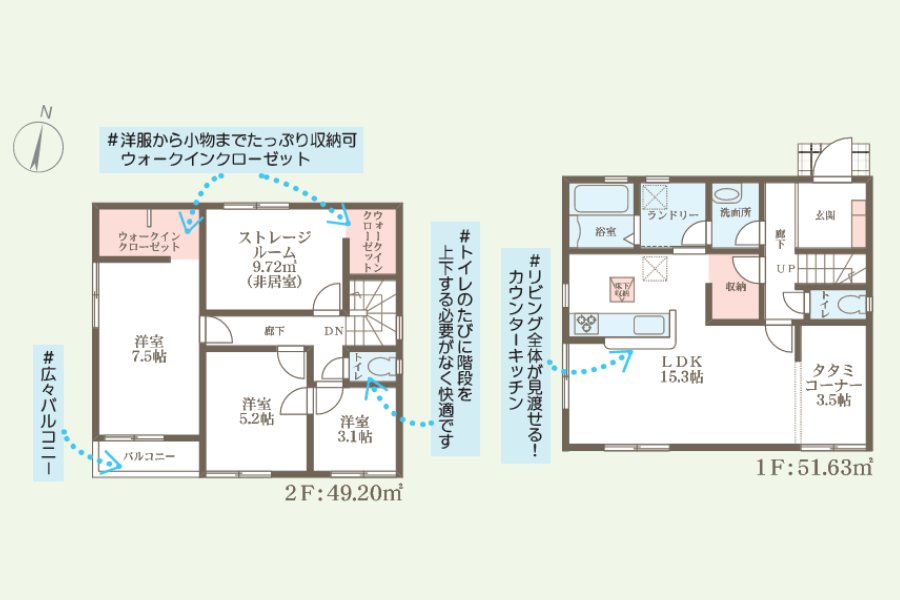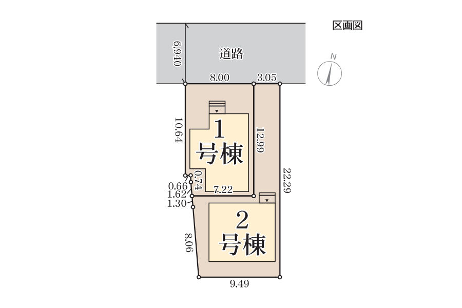 | 土地面積 | 1号棟:102.66㎡(31.05坪) 2号棟:90.51㎡(27.37坪) |