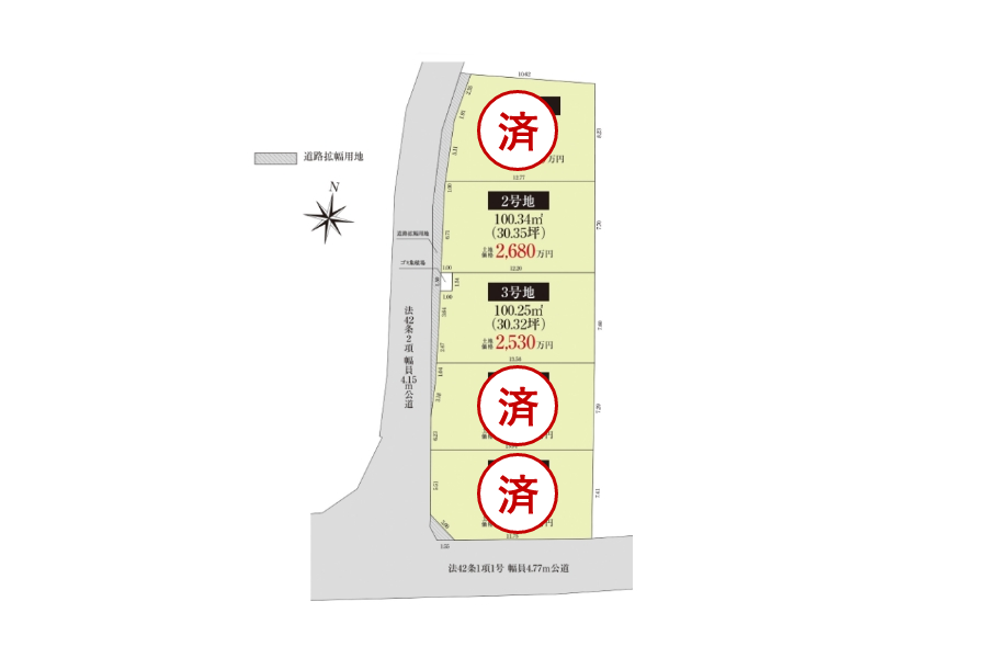 | 土地面積 | 100.25㎡(30.32坪)~100.34㎡(30.35坪) |