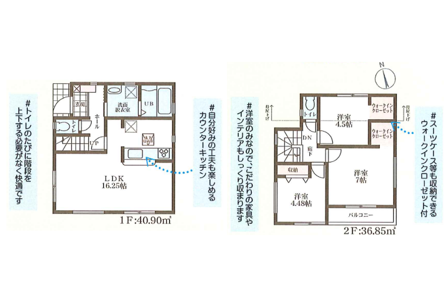 | 建物面積 | 1号棟:77.75㎡(23.51坪) 2号棟:89.09㎡(26.94坪) |