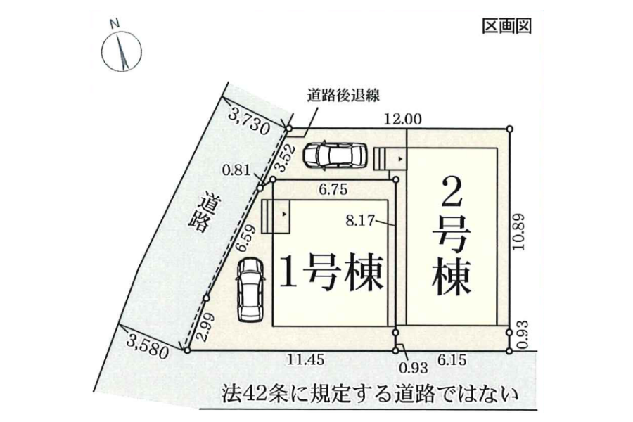 | 土地面積 | 1号棟:86.13㎡(26.05坪) 2号棟:90.51㎡(27.37坪) |